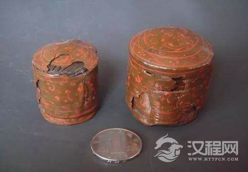 薄木胎漆器在战国中期以后出现,并逐渐普及。胎体的制作方法主要是卷木成型,即将长条形的薄木板两端削成斜面,弯曲卷成圆筒状,再用生漆将木板两端斜面对齐吻合粘接,然后粘圆形底板、加盖。这种薄木胎主要用来制作奁、盒、樽、卮等圆筒形漆器。