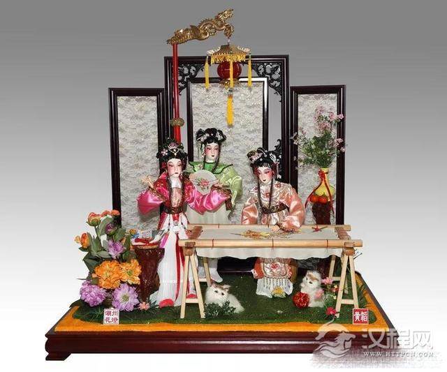 装饰的材料主要有饰线、绣片、珠片和花纸等。饰线可以是纱织的,也可以用花纸裁成线状,其功能是用来掩饰裱面时留下的接缝,同时起到美化的作用,使作品更显华丽。绣片,主要用在灯屏上人物的衣饰方面。珠片、花纸等饰物通常用于装饰、补白作用,使作品表现出和谐的美感。