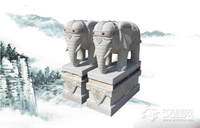 大象石雕 象征吉祥如意,被人们称为“兽中之德者”。寺院大门口一般常用,古代石雕牌坊中也有用大象替代石雕狮子的也不少,在石牌坊的横梁上也有很多吉祥如意的图案。