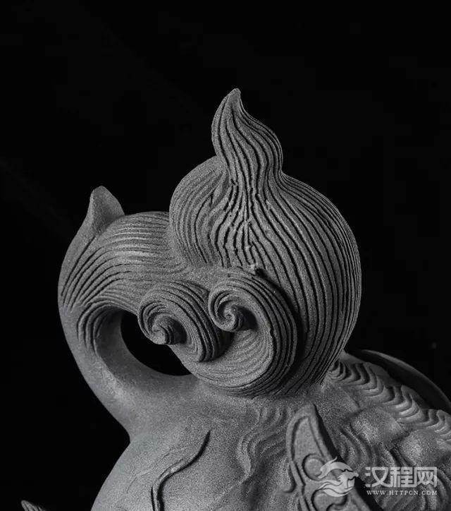 如意尾巴,飞扬向上,手工雕刻清晰细致,疏密有致。