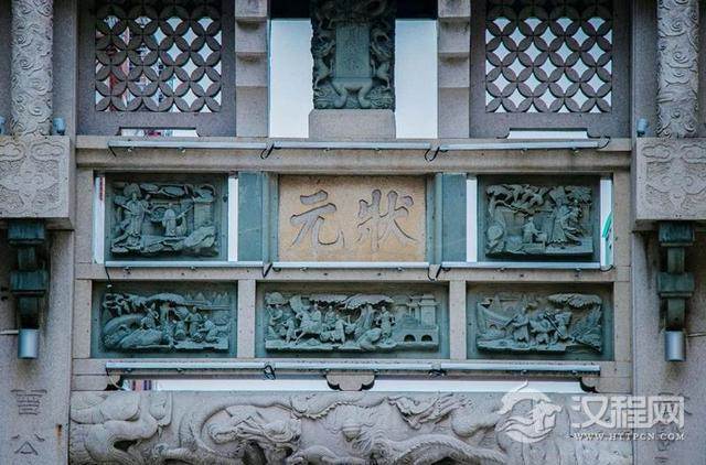 之间贯穿着几幅大型墙塑壁画镌刻状元精神