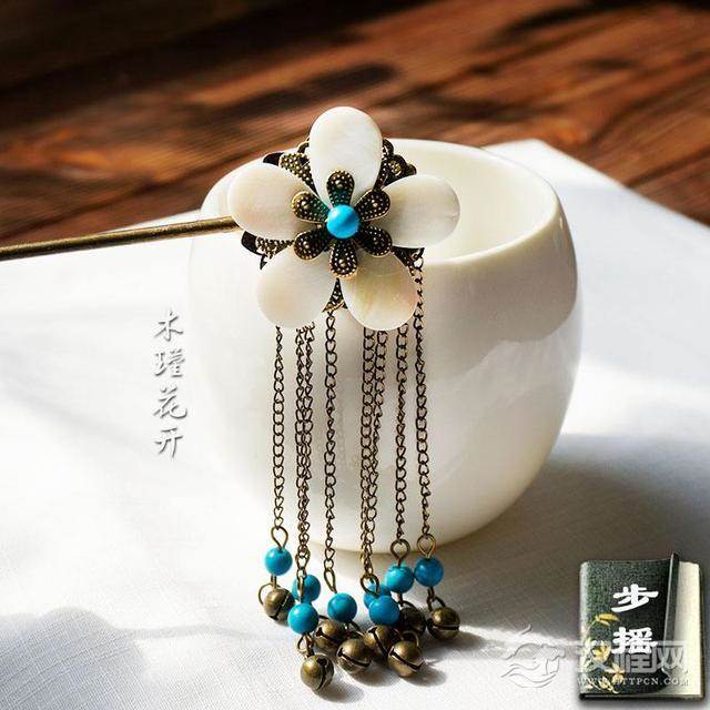 步摇首饰始见于汉代,最初只流行于汉代宫廷与贵族女人头上。是在簪钗上装饰一个可以活动的花枝状饰物,花枝又垂以琼玉,因在走动时,簪钗上的珠玉会自然摇曳,所以得名“步摇”。步摇属于汉代礼制首饰,其形制与质地都是等级与身份的象征。汉代以后,步摇才逐渐为民间所见,在社会上广为流传。在贵族妇女中,还实行过一阵加于冠上的步摇冠。戴在头上较之步摇更有富贵豪华之感。六朝以后,其花式愈繁,晶莹辉耀,与钗钿相混杂,簪于发上。唐白居易《长恨歌》:“云鬓花颜金步摇。"