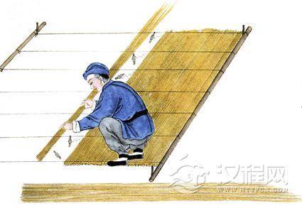 将芦苇用线绳结成席,盖房时将其盖在檩上,上面再用泥覆盖。