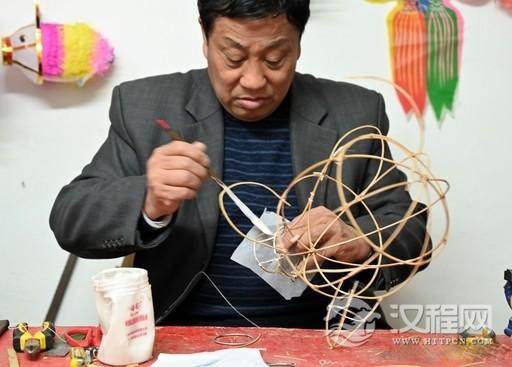 元宵节临近,我市花灯艺人钟义臣正加班加点赶制花灯。