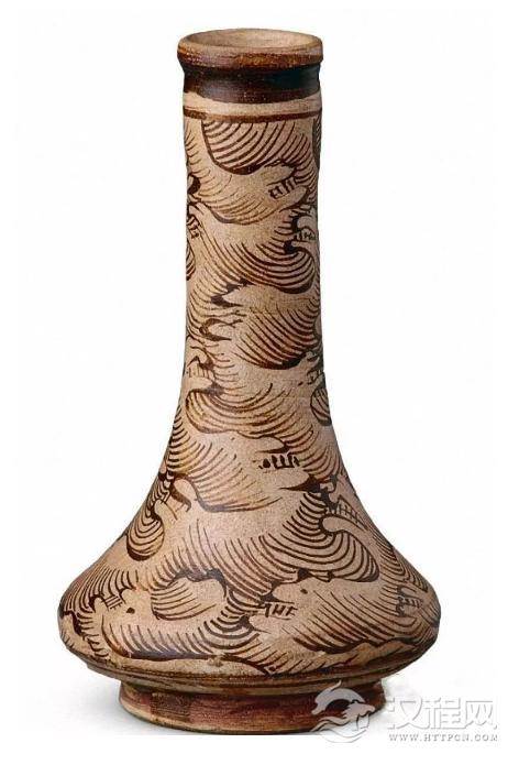 宋吉州窑彩绘海涛纹瓷瓶