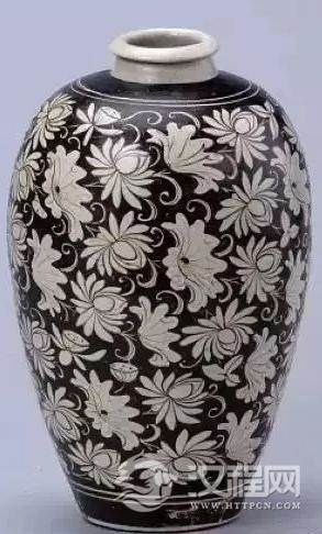南宋吉州窑黑褐地白花莲花纹梅瓶
