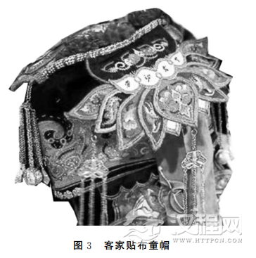 客家服饰装饰手法中的立体装饰手法主要有雕塑、塑造、镶嵌、刺绣、布贴等形式。客家服饰的装饰手法仍然保留部分中原服饰中刺绣、银饰等手法,并吸收当地印染、拼接、贴布等技术,从而形成客家服饰中独具特色的装饰特征。