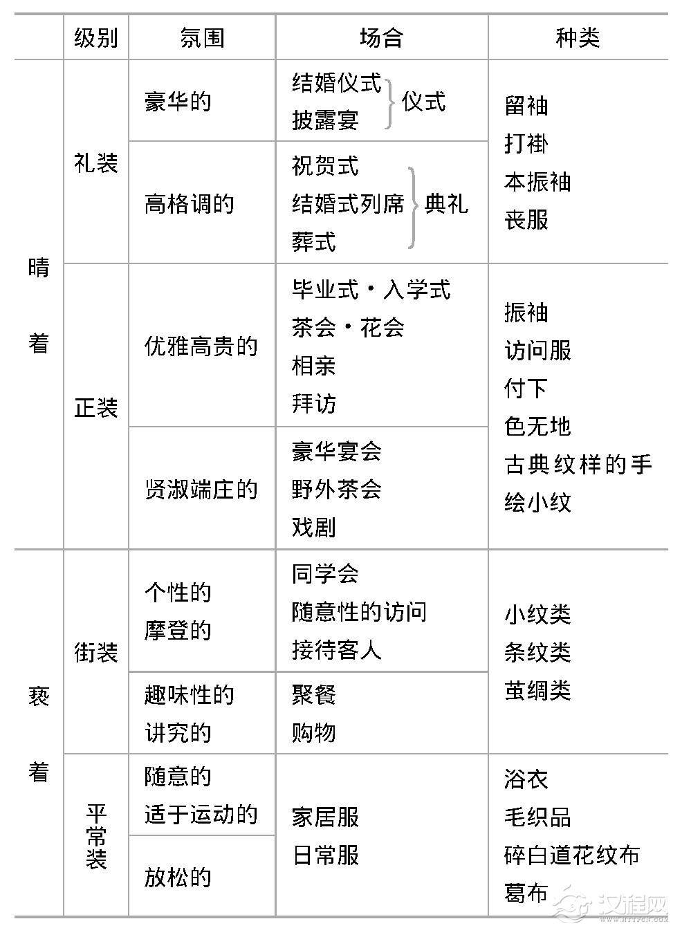 表1和服体系的参考表格
