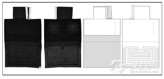 苗族服装的平面结构和立体着装效果是其一大特色,充满设计的意味。最初由于面料的珍贵、布幅宽度的限制,需仔细规划用布。衣服结构多来自于简单的几何形,主张物尽其用,减少因琐碎裁剪而造成的面料浪费,即便是剩余角料也毫不浪费地装饰在衣服上。古时传统制衣多用减法,甚至可一毫不减(剪),而今日时装之构造更像加法。相比现今的设计,传统造物之道、古老的剪裁方式更具研究价值,通过实物测量分析,将传统服装结构进行解构,相信对今日设计也有不少启发。