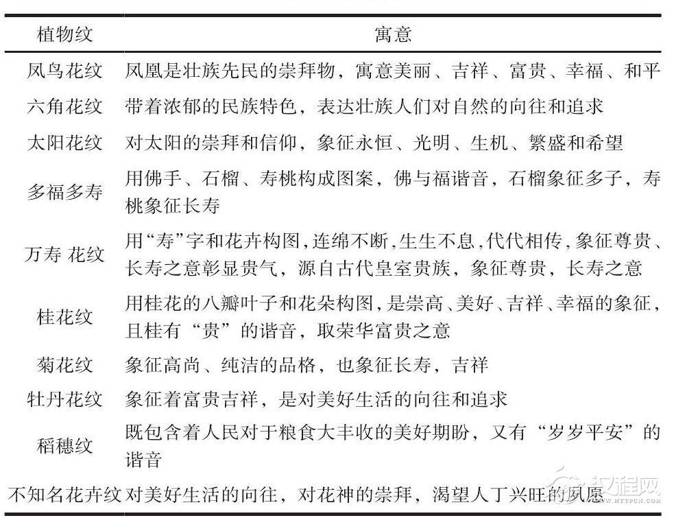 壮民崇尚美,热爱自然,勤于劳作种植,渴望收获。壮民将生产、劳作的杰作融入传统壮族服饰构图纹样中形成具有鲜明壮族特色的植物纹样。