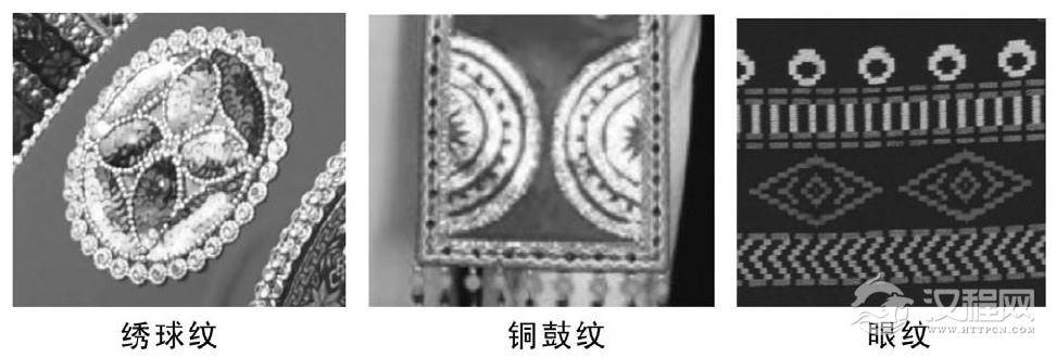 壮族传统服饰构图纹样除了上述几大常见的纹样外,还有绣球纹、铜鼓纹、眼纹等其他纹样(见图2-5),并有其相应的寓意(见表2-5)。