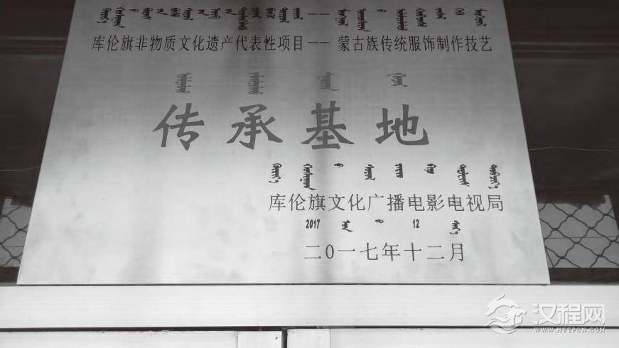 3图2是包英格女士申请创办的蒙古族刺绣传承基地的牌子,频发单位是“库伦旗文化广播电影电视局”,拍摄时间:2018年春,拍摄者:笔者。
