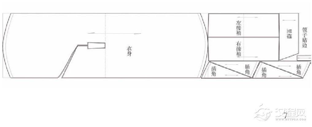7.白领苗斜襟左衽衣标本主结构排料复原图