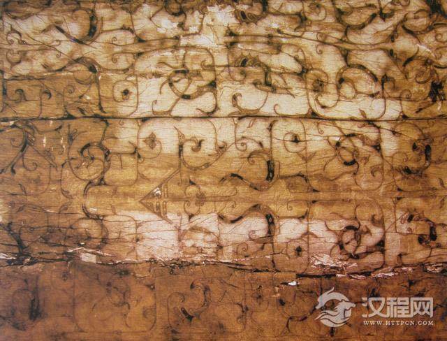 浅黄绢刺绣对凤对龙纹面衾(图1-1-2-5),长220CM,宽207CM,衾里为灰白色绢,多幅拼缝而成,接处纹饰错位排列,由多组对称龙凤纹组合,依然是辫子针绣成,战国风貌显著。