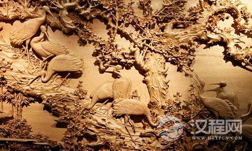 以雕刻材料分类的民间美术品种。一般选用质地细密坚韧,不易变形的树种如楠木、紫檀、樟木、柏木、银杏、沉香、红木、龙眼等。采用自然形态的树根雕刻艺术品则为“树根雕刻”。木雕有圆雕、浮雕、镂雕或几种技法并用。有的还涂色施彩用以保护木质和美化。