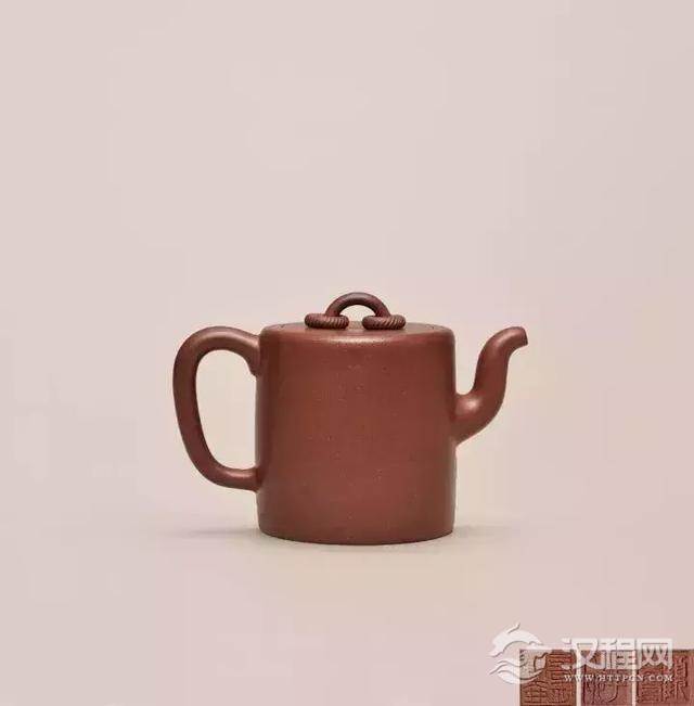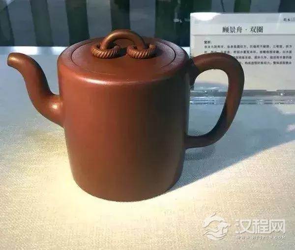 此壶高身筒,硕伟,挺拔。壶钮上有两个环圈,珠圆玉滚,寓意双璧辉映。