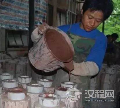 顾名思义,把泥巴浆灌到模具里面,泥巴干了,可成壶,成杯,成雕塑,成花盆,成酒瓶等等,适宜大批量生产,成品率极高,若用心修胚,每把壶都能做的非常完美,但工艺价值极低。