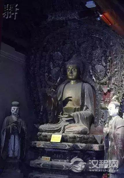 其中,胁侍释迦牟尼佛两侧的为阿难、迦叶,