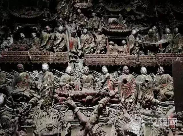 殿内塑满佛传故事、五百罗汉渡海、