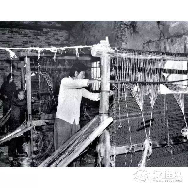 4、行绠:用黄麻纺织成的麻绠按织席垢上的长眼(长孔)和圆眼(圆孔)依照席的种类编成一道道的绠绳,将席垢固定,这些绠绳用长机,织长席,须行绠,行一次席,可以织10张席;“矮机”(短织席机)每织一次席,绠一次席。织短机,绠席次数多。