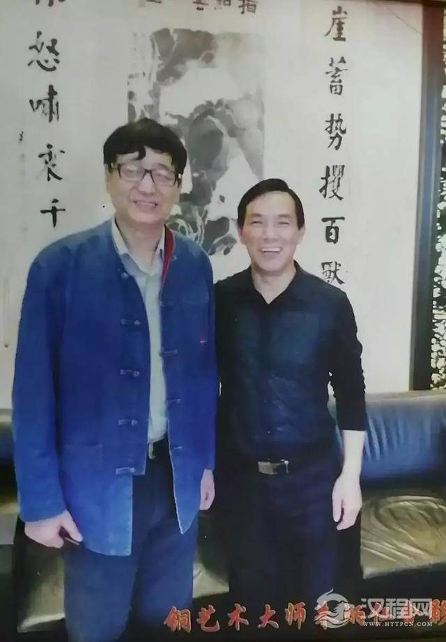 董事长俞世宝(右)与铜雕技艺国家级非遗传承人、中国工艺美术大师朱炳仁(左)合影