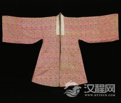 粉色夔龙凤穿花纹锦女帔,清乾隆,身长135.5cm,两袖通长220cm,下摆宽106.5cm。