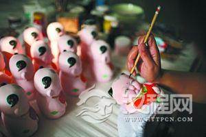 中国工艺美术大师 喻湘莲:因为大阿福最早是作为神供在那里的,因为它是避邪。有个传说故事,年它是白天吃太阳,晚上吃月亮,它在玩太阳和月亮,它把人搅乱了,人的生活就不安宁了。但是阿福又把年征服掉了,它就把它抱在手中,听阿宝福的话了。这样生活就安宁了,所以大家希望自己生活过得安宁。随着时代的变迁,现在又把阿福的形象变成小朋友的形象了,希望自己小孩子有神气。有种历史的演变过程在里面,慢慢演变到现在变成吉祥物。