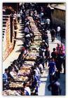 昂玛突节的第二天,家家户户要做黄糯米、三色蛋、猪、鸡、鱼、鸭肉、牛肉干巴、麂子干巴、肉松、花生米等近40种哈尼族风味的菜肴,准备好酒,抬到指定的街心摆起来,一家摆一至二桌,家家户户桌连桌沿街摆,摆成一条700米多长的街心宴(当地人称长龙宴或街心酒),这是中国最长的宴席。