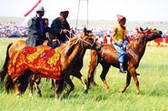 节庆、礼仪食俗 除春节等节日与临近其他民族的节日一样外,鄂温克族还要在农历五月下旬择日举行的“米调鲁节”。米调鲁是欢庆丰收之意。节日期间,人们都要身着盛装,男人们要进行剪马鬃、马尾活动,届时牧民们家家都要备下丰盛的酒肉,宴请亲朋好友。鄂温克族好客并讲究礼节,到鄂温克族家里做客,主人把皮垫摆在哪里,客人就在那里落座,不得随意挪移皮垫。客人落座后,女主人随即端上奶茶,然后煮兽肉,肉煮好后,女主人拿出猎刀切一小块肉投入火堆里,然后再给客人们吃。如果来者是贵客,通常还要献上驯鹿的奶。鄂温克族待客必须有酒,除饮用白酒外,家家都能自酿野果酒。敬酒时主人要高举酒杯先往火中倾注点滴,自己先呷一口再请客人喝。鄂温克族认为:外出的人谁也不会背着房子走,如果自己不招待别人,自己出门后也不会有人照顾。