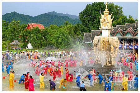 “泼水节”是布朗族盛大节日,每年三月清明节后七天举行。泼水节期间,全村寨青少年男女拿着竹盒、小竹篮前往河中捞沙,背回缅寺,在缅寺广场前堆沙祭佛。次日中午,全村老幼皆着新装,手持锥栗花、椿木树枝,齐集村头,青年击鼓列队前往缅寺,并把花朵、树条插于沙堆上,每天插花三至五次,夜间青年男女尽情欢唱,热闹非凡。