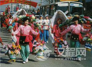 肘歌舞:肘歌由“座子”(执撑者)和“架子”(表演者)组成,内容以传统折子戏为主,在鼓乐配合下,且行且舞。