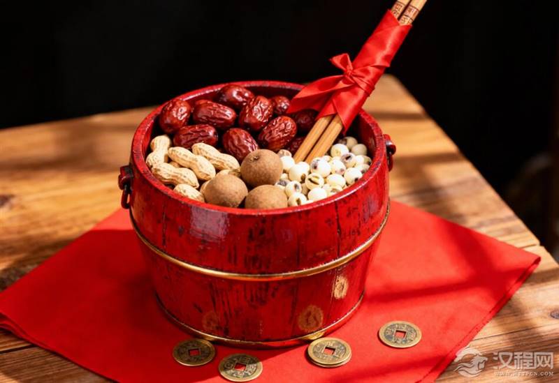 内容上也更加多元。不少家庭会加入百合(百年好合)、开心果(开开心心)、石榴(多子多福的石榴籽)等新吉祥物。在四川,有母亲在桶中放入花椒的习俗,因《诗经》有“贻我握椒”之句,花椒自古便是婚嫁信物,寓意“芳香又多子”。