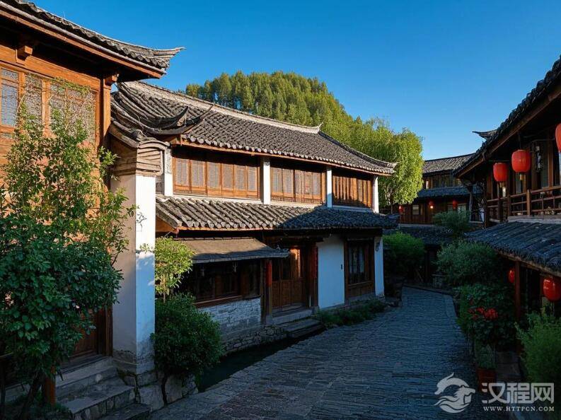 若说建筑是凝固的时光,束河古镇便是将岁月窖藏的一坛陈酿。漫步其间,脚下青石板早已被马蹄与草鞋磨得温润如玉,缝隙里藏着茶马古道的尘烟。抬眼望去,纳西人家的灰瓦白墙错落有致,檐角如燕尾般轻盈上翘,仿佛随时会载着旧日故事飞向雪山。这些房屋多以“三坊一照壁”为骨架,正房、厢房与照壁围合成院,既防风避寒,又让天光云影在方寸间流转。门楣上雕刻的东巴文图腾,像一串未解的密码,讲述着纳西人对自然的敬畏——飞鸟衔花、游鱼戏水,连屋脊上的瓦猫也瞪圆双眼,镇守着家族的安宁。