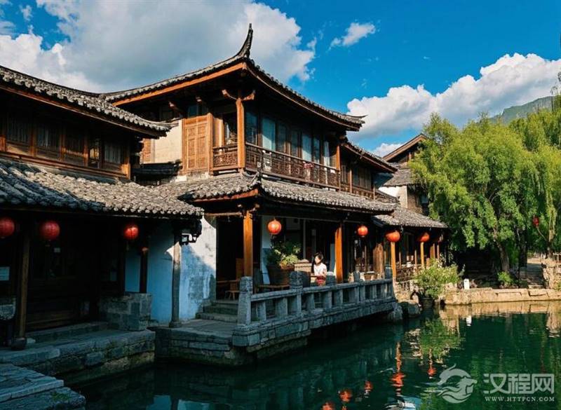 转过一条窄巷,忽见青龙桥横跨溪流。这座四百年前的石桥,桥面斑驳如老人掌心,却依旧稳稳托住南来北往的脚步。传说曾有仙人一步跨桥登天,桥畔杨柳年年抽新,烟雨朦胧时,恍惚能听见马帮铜铃的回响。桥西的聚宝山如屏风展开,将古镇拢入怀中,恰应了“丹凤含书”的祥瑞之象——背山面水、藏风聚气,难怪木氏土司将发祥之地选在此处。