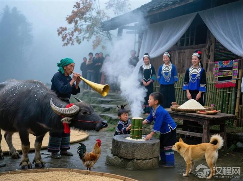 山雾还未散尽的清晨,毛南山寨里已经响起了低沉的法螺声。男人们围着那头系着红绸的壮硕水牛,女人们捧着装满糯米的竹筒,孩子们踮着脚在人群缝隙间张望。这是分龙节最庄重的时刻——当族长举起系着五色丝线的牛角号,所有人都屏住了呼吸。奇怪的是,待仪式结束,牛肉被分给各家各户,唯独那对弯月般的牛角会被小心取下,用桐油擦拭后悬挂在祠堂的横梁上,像两柄守护村寨的弯刀。