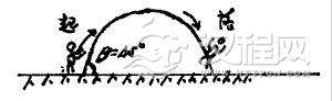 如果能掌握“起落”要领,即可将超于自己体重的对手,轻而易举击出丈外。这个道理并不神秘。它与近代物理学中抛物线原理是十分吻合的。按照物理定律:物体在向上斜抛时其运行轨迹为一条抛物线,抛物线的形状依抛出的速度和角度不同而各异。在初速度一样的条件下,当抛出的角度为45度时,抛出距离最远。抛物线可分为上升与下降两段,前段为升,后段为落。相应地在技击上表现为起和落两个动作。(见图一示)
