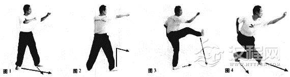 要领:由右势变为左势要迅速,在身势变换的同时出手,即边走边打。