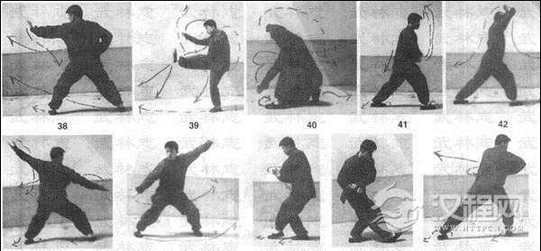 要点:身转步提,落步踏吞,抄撩架揣,劲力充足,拳势沉稳,全身一如。