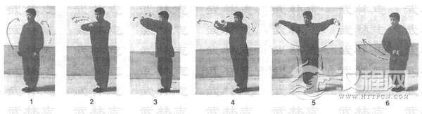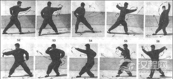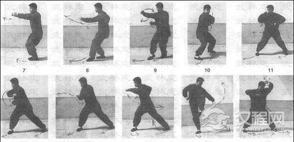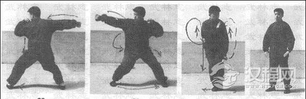 要点:上举落抄,提肘转腕,大合大开,拳势稳健。