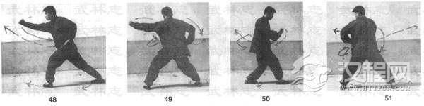 附图50:合抱左缠腕动作;附图51:左顶肘动作。