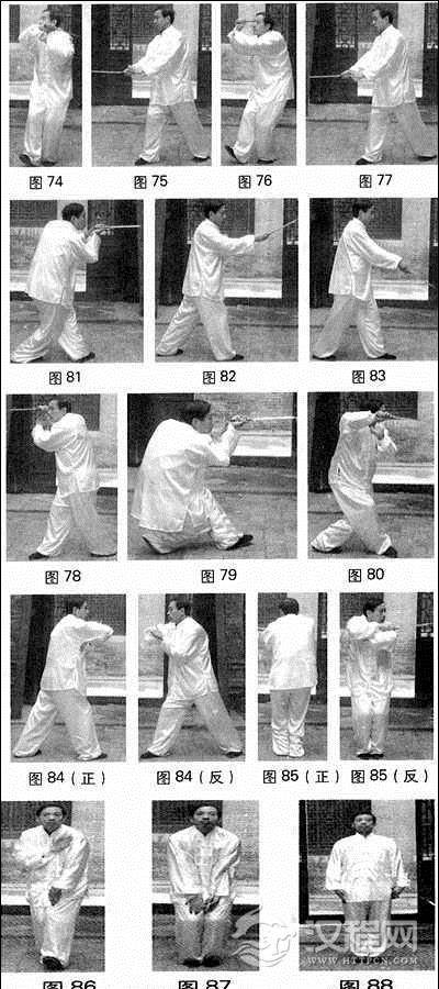 峨嵋刺共八八六十四式,按井字八角练,每角八个动作。