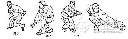 功用:长盘此手可盘出蝴蝶手的四面八方移动重心之功能,在移动中我可顾四面八方而后用浑身之头、肩、肘、手、胯、膝、脚七星击敌的功用。