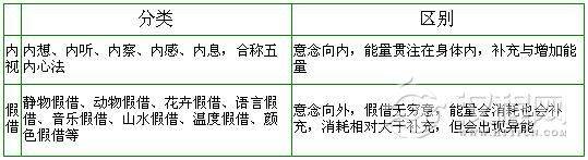 以下是内视与假借间的关系与区别对照表: