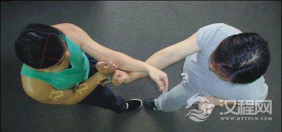 (图:在偏身马姿态下的引桥对肩)