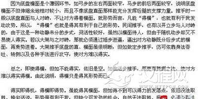 例如,当用手指轻轻推动直立的火柴盒,如果你把推的部位放在它横面的下部,一般只会使火柴盒发生移动而不会跌倒;如果推它横面左右两侧的边缘,即使用力稍大些,也只能使它发生转侧现象。人体运动远比静物复杂,机势瞬息万变,唯有机势并得,才能取胜。你如没有机会发落到人家的实处,就像你的前面虽有个靶子,但由于种种原因打不到靶子上去,那这个靶子正对着你的大好形势,依然得不到可利用的机会。