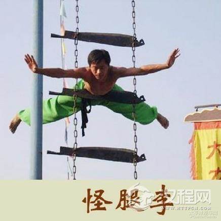 第七怪:李亮刀山爬上云霄外。李亮15岁登台,人送绰号“怪腿李”。