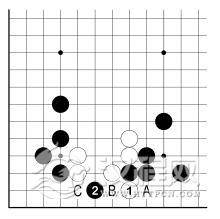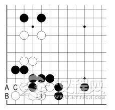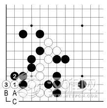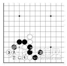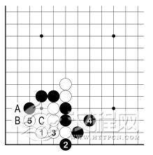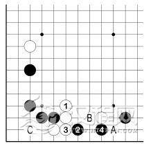 此外,白 3 若 B 位虎,黑 C 点后,白不能成活。