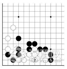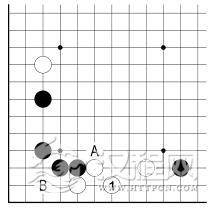 白 1 扳这边无疑也是恶手。即使被黑A 位挡也不好。何况在此形中黑 2 点更加严厉。