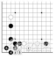 白也有 1、3 扳立的,然而这种下法毫无必要。黑 6 之后,无疑会产生一些麻烦的问题。