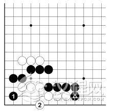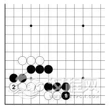 在前图中,白脱先了。黑 1 挡,则白 2 活棋。但是在实战中,被黑 1 先手挡下,是很难受的。